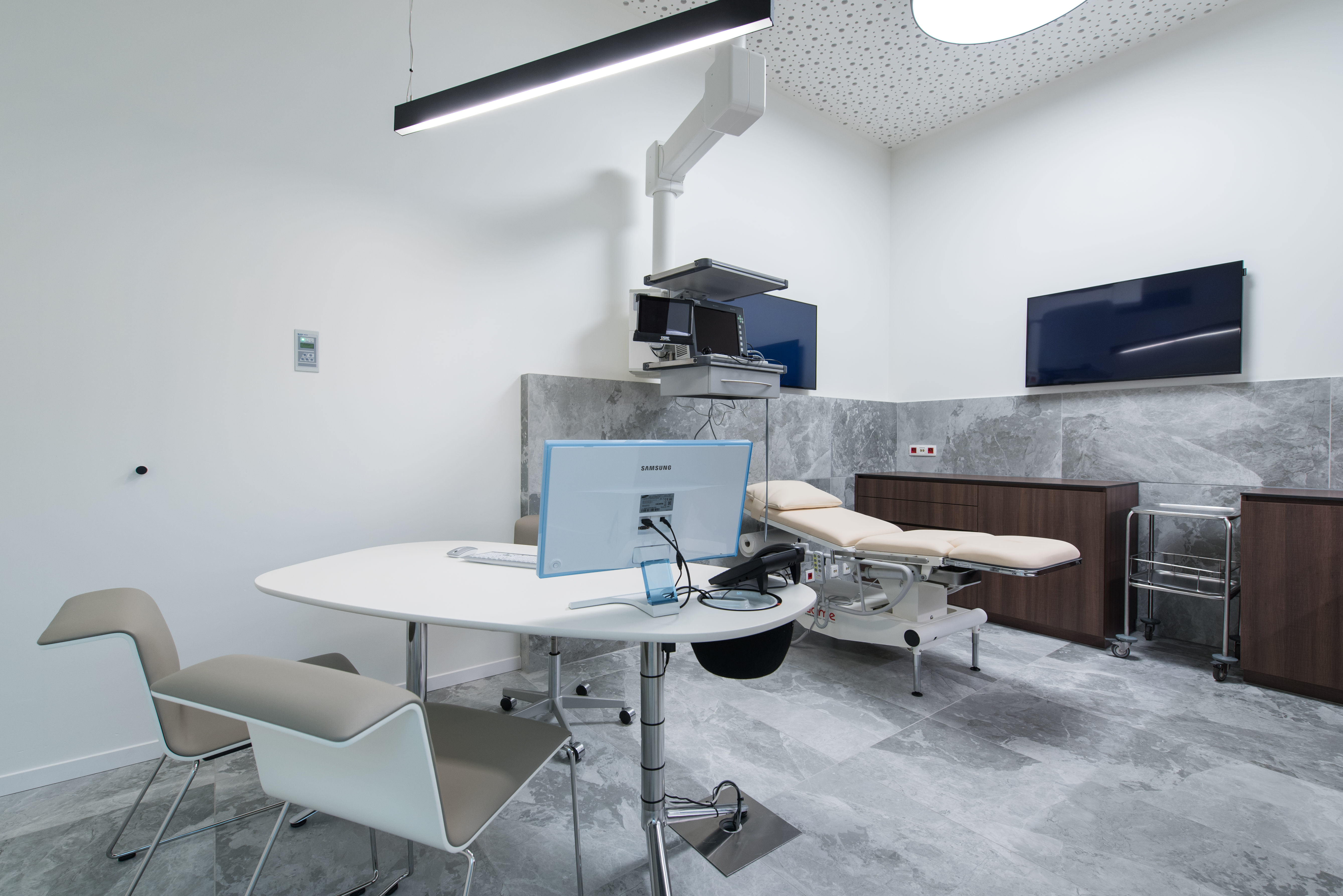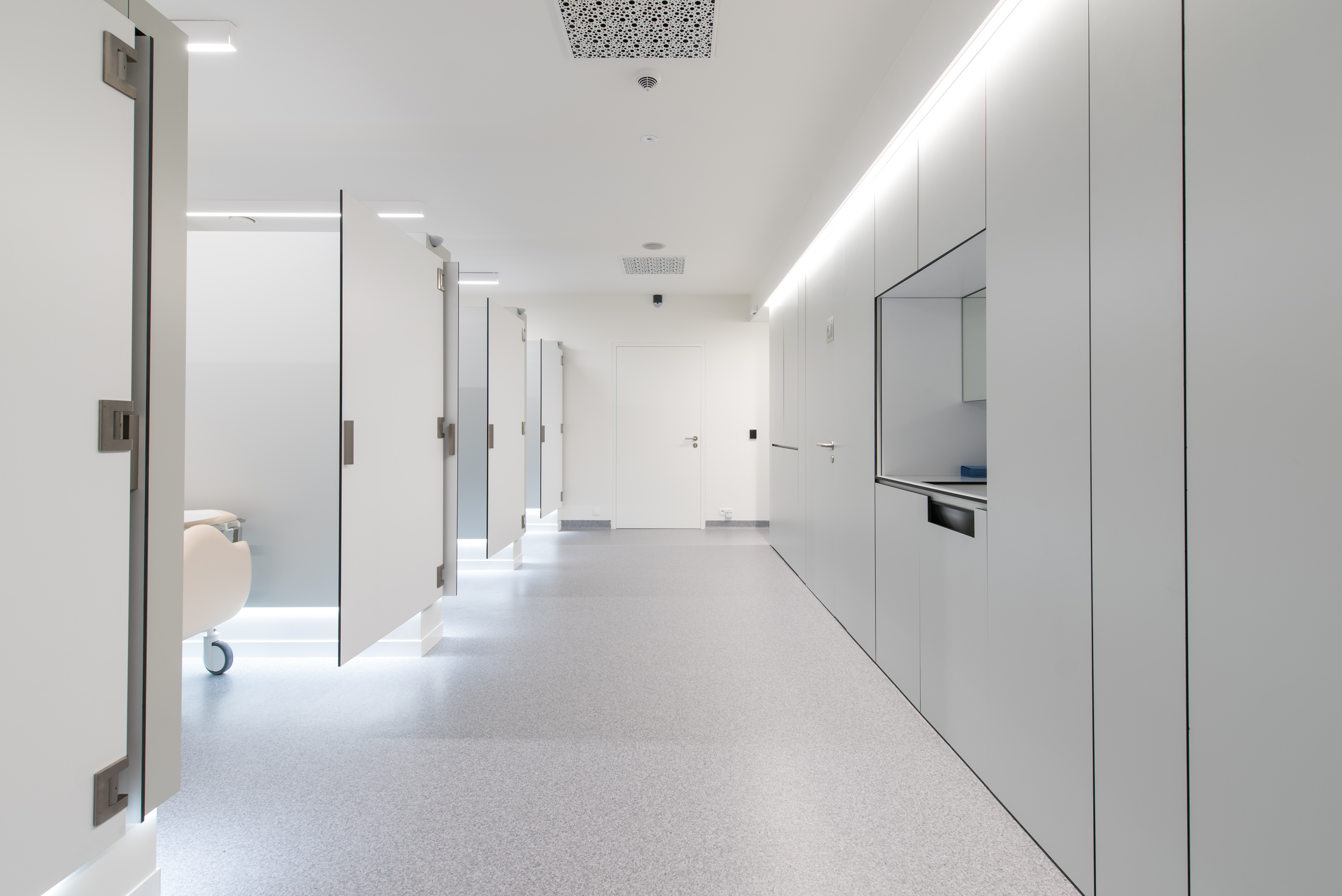 A perfect rendition of our cross-over design expertise, included designing the entire hospital (its space, including operation theatre and recovery rooms) and its visual brand. As architects, a particular challenge was circulation in a medical setting within a confined space. As graphic designers, we loved producing two 15m wide wallprints. Conceptually, we strived for a sterile but inviting environment with a high-tech appearance.